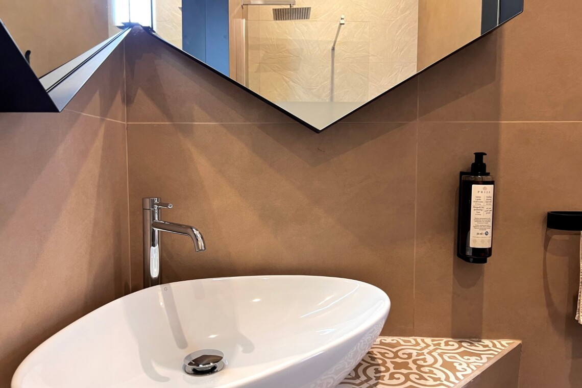 The en suite bathroom has a walk-in shower and chromotherapy.